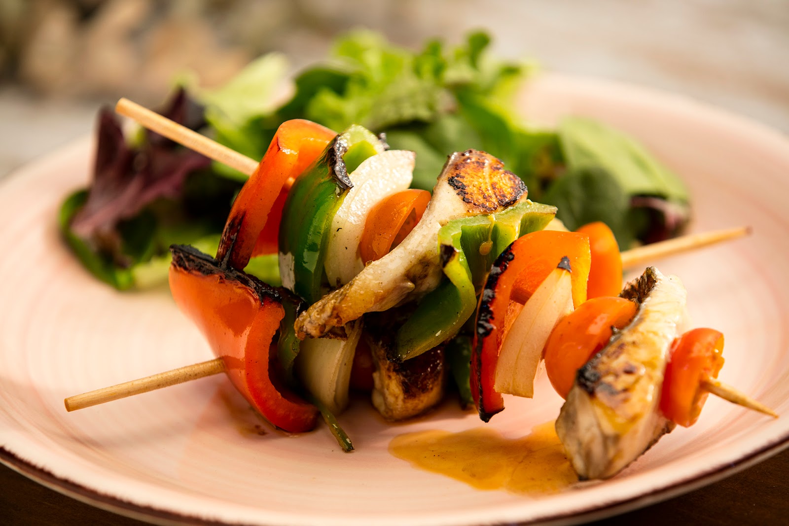 9. Al usar verduras, cortarlas finas o meterlas en la barbacoa antes que el pescado, ya que tardan más en estar al punto. Se puede acompañar de pipirrana fresca con tomates, pimientos verdes, pepinos y cebollas de temporada.